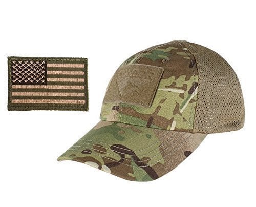 Condor Multicam Mesh Tactical Cap & USA Flag Patch Stitching & Excellent Fit for Most Head Sizes